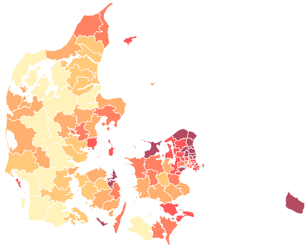 Et kig i salgstallene viser yderligere, at der er store geografiske forskelle på, hvor meget Aperol butikkerne sælger. I København og langs kysten nordpå bliver der lagt markant flere flasker i indkøbskurven, mens Århus og området omkring Skagen også er godt med. På Samsø, Fanø og Læsø ligger salget også markant højere end i resten af landet.